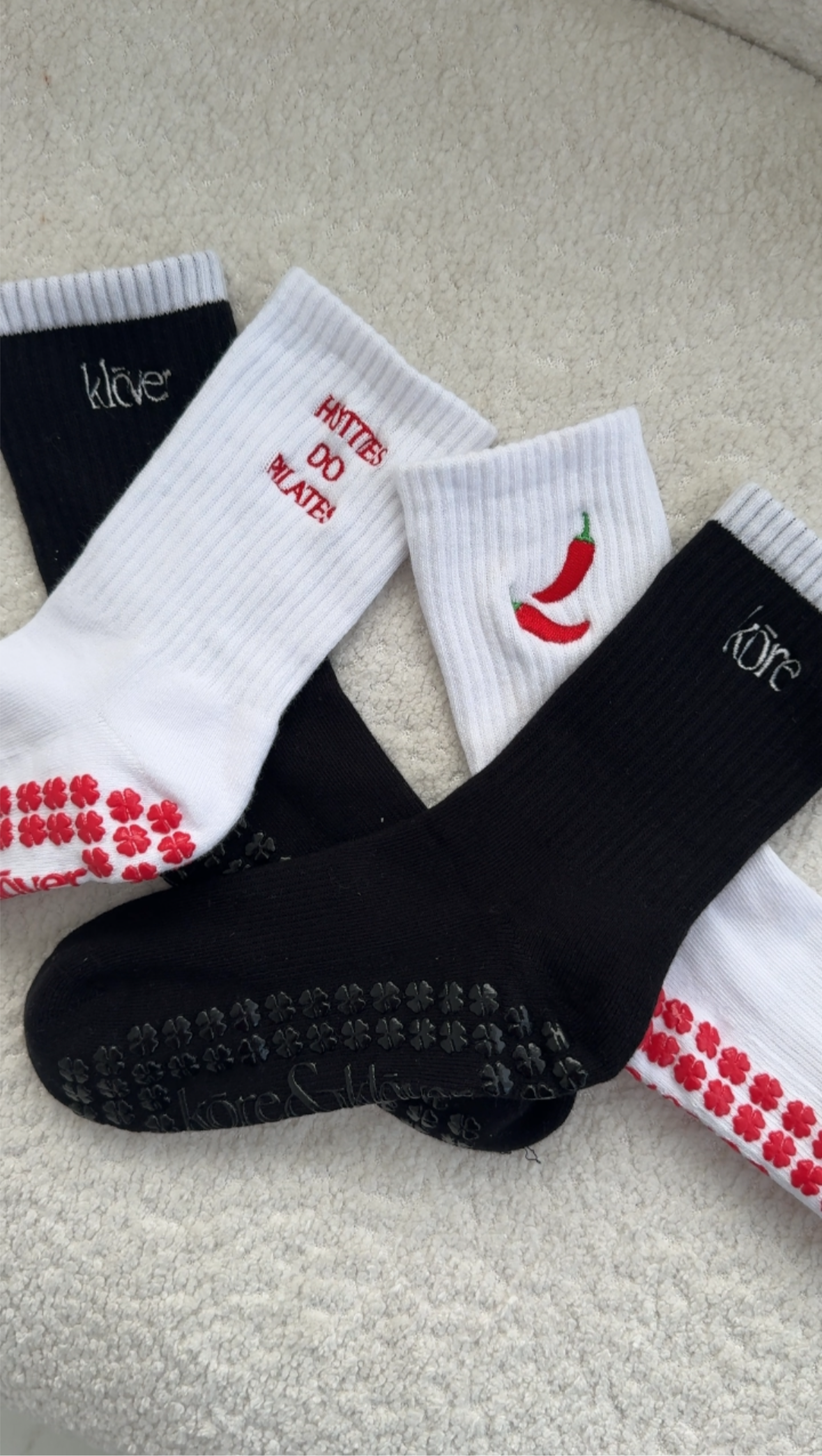 We know that it's just socks... but matching Pilates gear? That's the commitment we love to see.