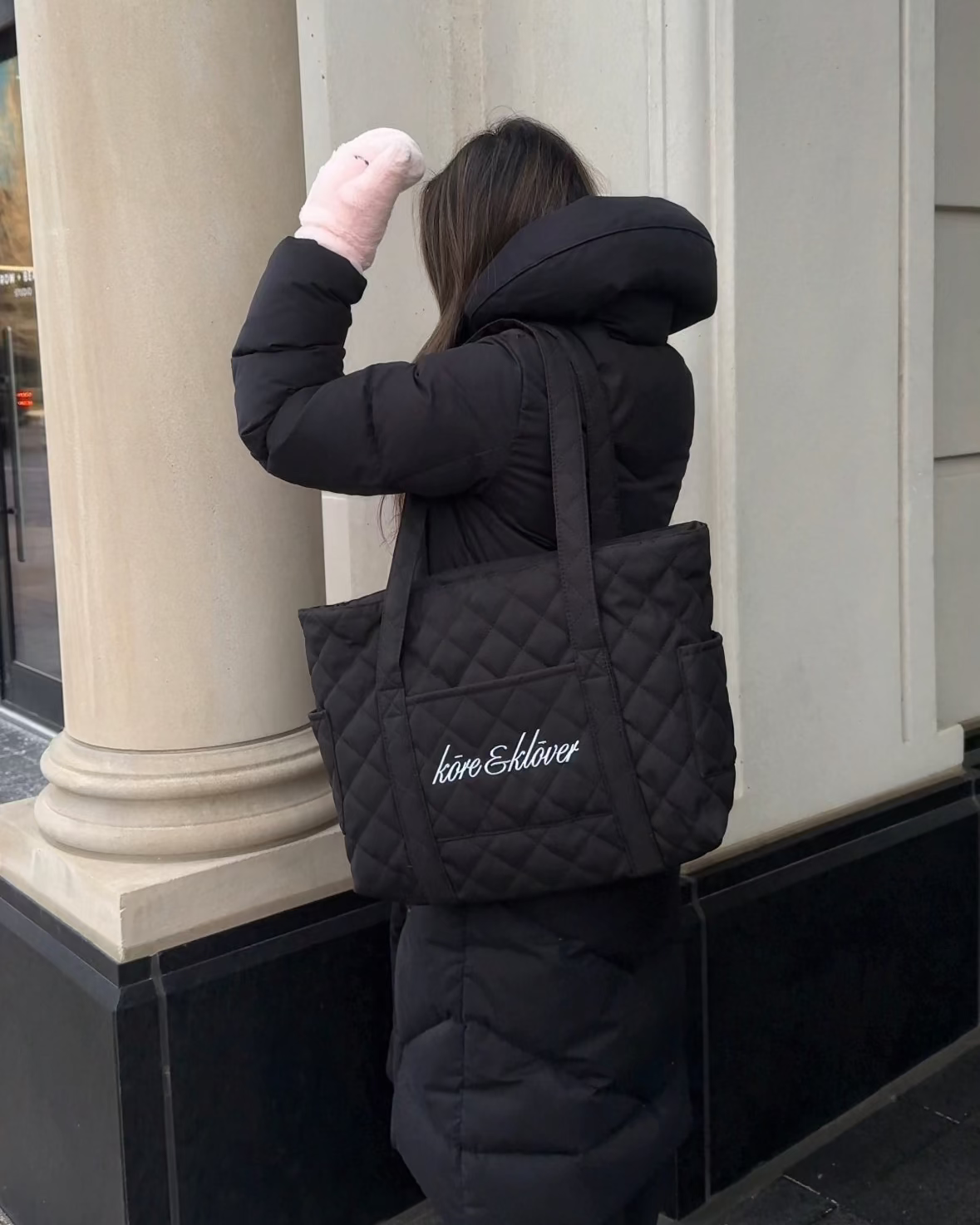 Introducing The Odette, an elegant, ballet-inspired quilted tote designed for the girl who moves through life with effortless grace. Its sleek black silhouette feels quietly luxurious, like satin ribbons tied just right.